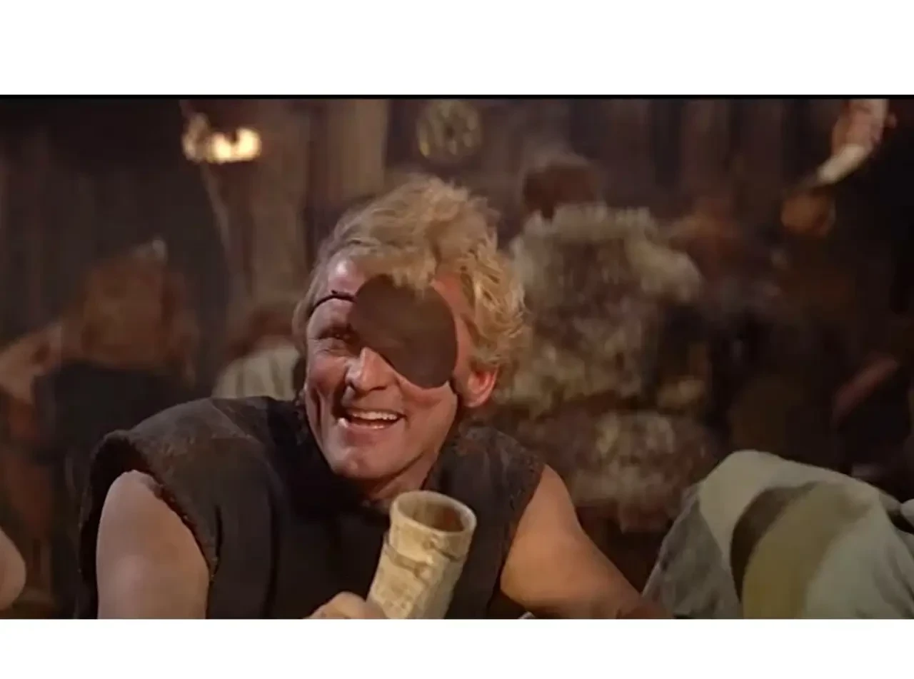 Кадр из фильма «Викинги» 1958 с изображением Эйнара (актер Кирк Дуглас).