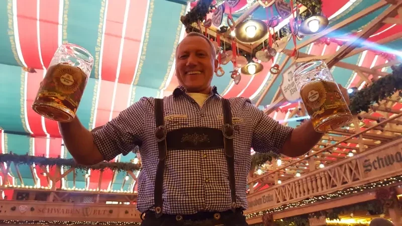 Ваш покорный слуга, в кожаных штанах, на Октоберфесте в 2017 году