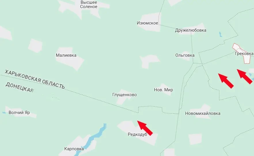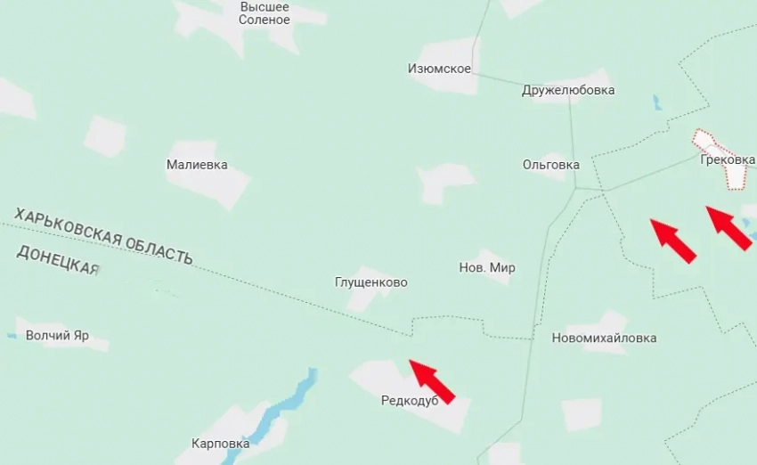 Напомним, что примерно в 10 км юго-западнее луганской Грековки ВС РФ также ведут наступление – в черте донецкого села Редкодуб и окрестностях.