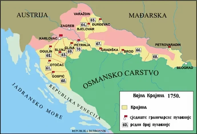 В 1578 году на рубежах Австрийской империи была организована Военная граница (Военная Краина) – полоса земли от Адриатического моря до Трансильвании, которая находилась под прямым управлением Вены (в настоящее время ее территория поделена между Хорватией, Сербией и Румынией).