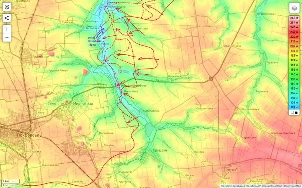 Вместе с этим на Северском участке фронта российские части заметно активизировались. В настоящее время ведутся боевые действия от Григоровки до Дронского, куда российские войска ранее уже пытались зайти. Сейчас движение возобновилось, и подразделения пытаются продвигаться по хребту в район Александровки.