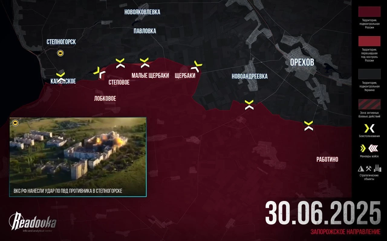 На Запорожском участке позиционные бои по всему фронту. В Каменском ВС РФ зачистили южную часть села и перешли через мост, где подняли триколор. В Малой Токмачке ВС РФ смогли продвинуться в восточной части. Есть продвижение и в Малиновке, где бои идут в центральной части села.
