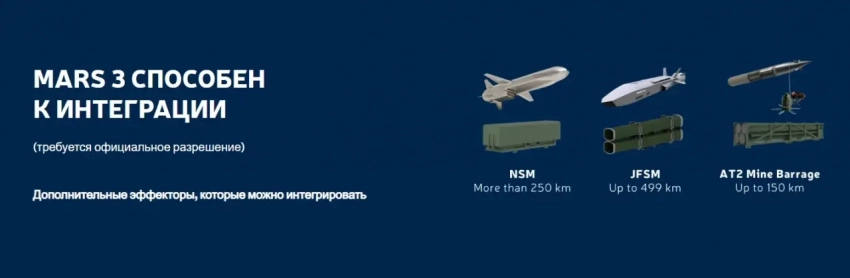Компании KNDS Deutschland (ФРГ), Elbit Systems (Израиль) и Kongsberg (Норвегия) провели первый запуск ракеты NSM, широко используемой флотами НАТО, из новой РСЗО MARS 3. Как заявляют разработчики, тестирование прошло успешно и подтвердило способность системы запускать эту дальнобойную ПКР.