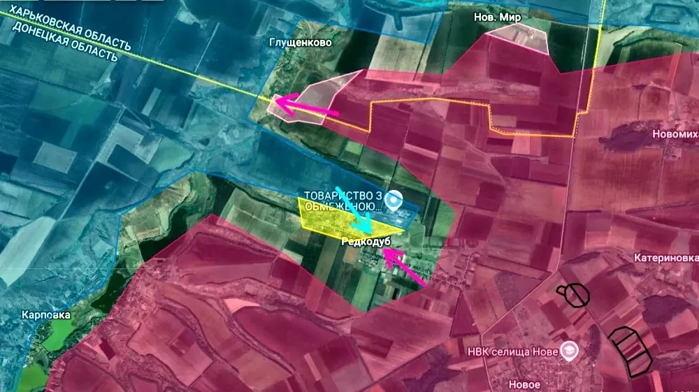 И вот, спустя две недели, сообщается, что наши вошли на окраины Глущенково и вновь Нового Мира. При этом поступают данные, что боевики ВСУ предпринимают попытки контратаковать и ворваться в Редкодуб, рискуя попасть в окружение. Причем такие небольшие контрнаступления противника проходят одновременно с нашим наступлением на этих же участках.