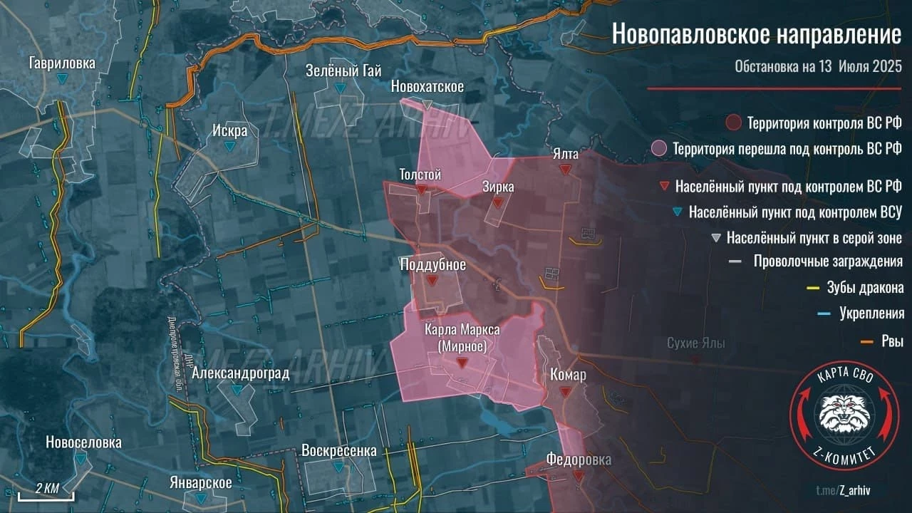 Он также отметил важность контролирования сел Карла Маркса и Николаевка в пределах ДНР. По словам Дандыкина, каждый населенный пункт имеет большое значение, и сейчас российская армия формирует окружение вокруг Константиновки, все быстрее продвигаясь в этом направлении.