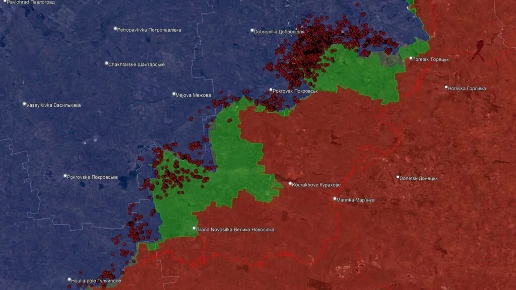 На Новопавловском направлении отмечаются боестолкновения в районе Удачного, российские войска расширили контроль территории в районе Новохатского и ведут штурмовые действия на восточной окраине Зелёного Гая.