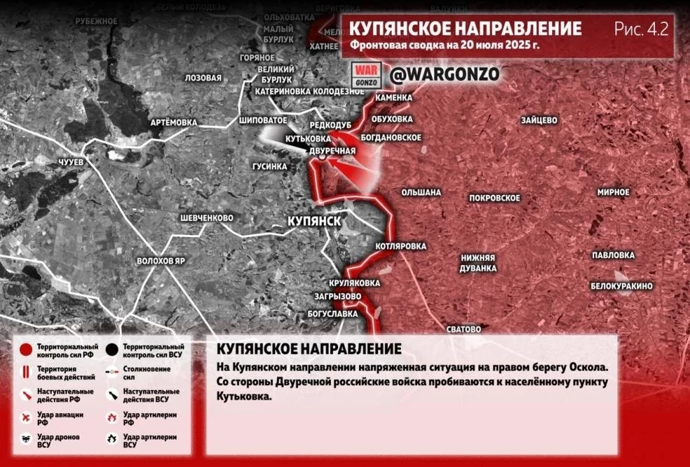 Карта боевых действий на Украине. Ситуация в зоне СВО на 20.07.2025