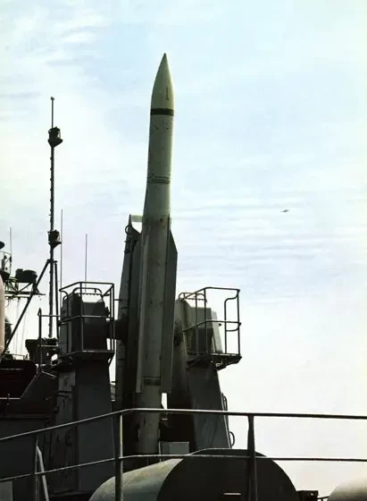 Пусковая установка ЗРК «Штиль» с подвешенной ЗУР на эсминце пр. 956Э