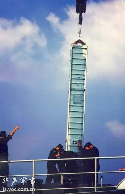Погрузка зенитных ракет на эсминец Type 052B