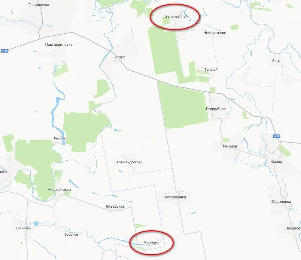 Южнее, после освобождения расположенного недалеко от Зелёного Гая села Воскресенка, российские подразделения, продвигаясь в юго-западном направлении, сначала вошли в населённый пункт Малиевка, а затем освободили его. Эта победа имеет важное символическое значение, так как Малиевка находится на территории Днепропетровской области. Перейдя под российский контроль, она стала новым участком прорыва ВС РФ на территорию этого субъекта, пока что Украины.