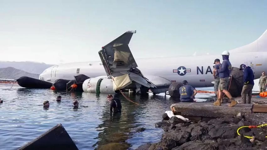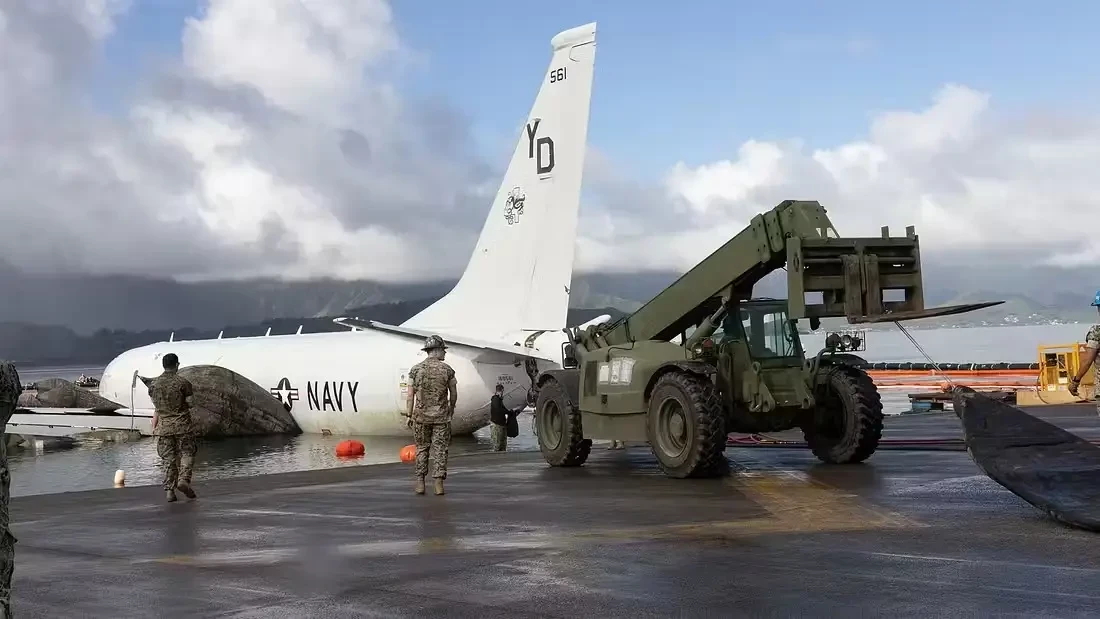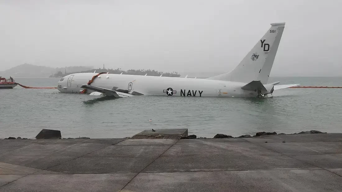 20 ноября 2023 года патрульный противолодочный самолёт ВМС США Boeing P-8A Poseidon после обычного тренировочного полёта, возвращаясь на базу, пролетел мимо ВПП на Гавайях и приземлился в находящемся за ней заливе с экипажем из 9 чел. на борту. Командование собиралось его отремонтировать, но ему была уготовлена другая судьба.