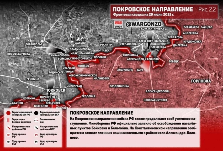 ВС России ведут ожесточённые бои в Леонтовичах и Суворово на Покровском направлении: свежие данные на 29.07.2025