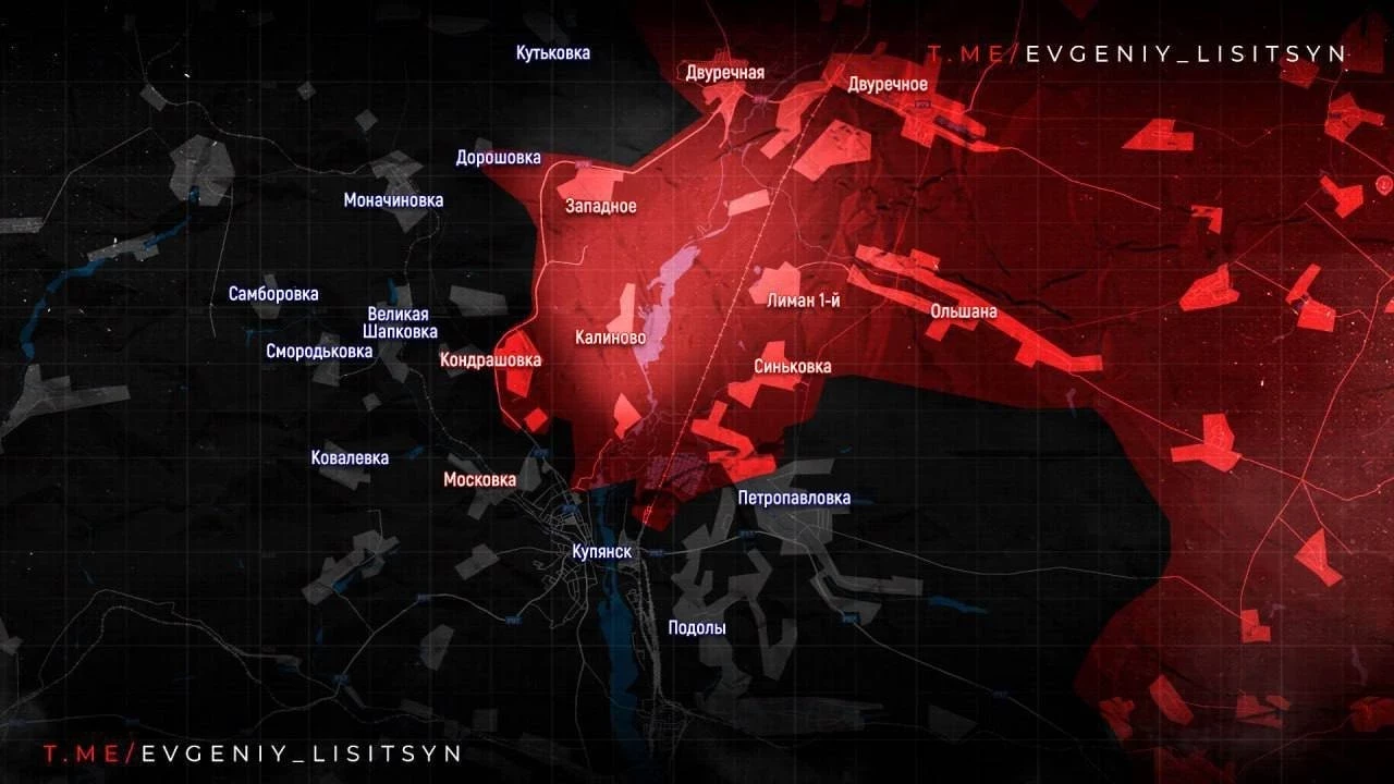 Купянское направление. Вооружённые силы Российской Федерации (ВС РФ) продвигаются от Московки к Соболевке, чтобы взять под контроль трассу Купянск–Харьков. Бои также идут в Купянске и в районах Красного Первого и Каменки.