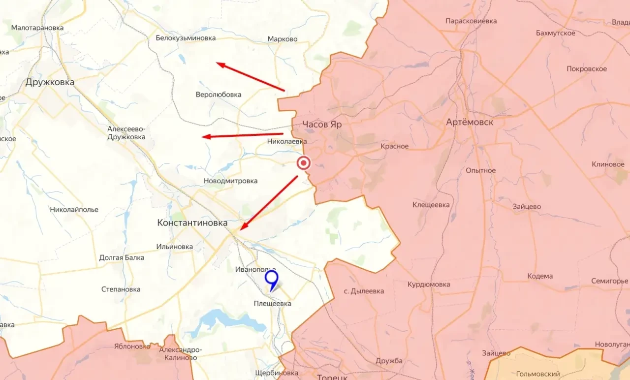 Освобождение Часова Яра резко меняет картину на Константиновском направлении. Падение крупнейшей крепости украинских боевиков открывает перед нашими бойцами широкие оперативные просторы и позволяет наступать минимум в трёх направлениях — на северо-запад, запад и юго-запад от города.