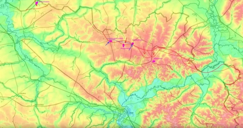 На Сумском направлении не снижается высокая интенсивность боевых действий. Вооружённые силы Российской Федерации (ВС РФ) продвигаются в сторону Мирополя, в то время как украинские подразделения пытаются контратаковать в направлении Алексеевки.