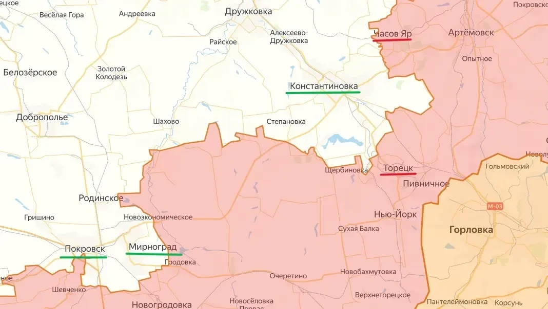 Журналист назвал четыре участка, где россияне могут это сделать. Первый включает Красноармейск и Димитров (переименованы киевским режимом в Покровск и Мирноград), второй – район Константиновки, Часова Яра и Дзержинска (украинское название – Торецк).