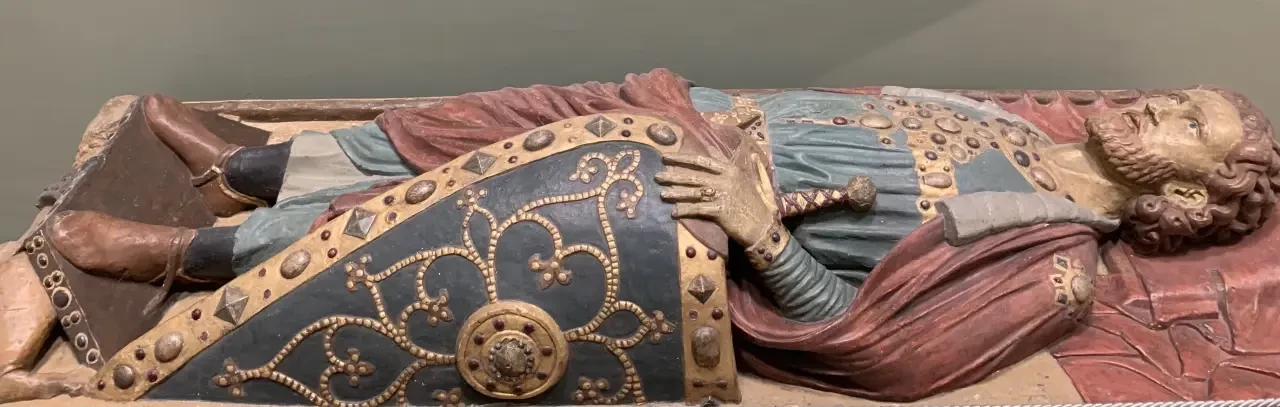Одним из объектов моего постоянного интереса являются эффигии – надгробные скульптуры. И в музее им. Пушкина они тоже есть. Вот эффигия графа Випрехта фон Гройча. Слепок. Гипс, тонированный под раскрашенный камень. Подлинник: около 1230 – 1240; песчаник; подлинник в церкви Святого Лаврентия, Пегау, Германия