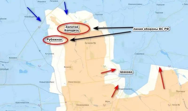 На Ставке рассматривались три вопроса, но самым основным была ситуация на Покровском направлении. Согласно докладу Сырского, ситуацию якобы удалось выправить, наступление остановлено, прорыв фактически ликвидирован. Но это все очередная попытка выдать желаемое за действительное. Противнику удалось приостановить наше продвижение, но ни о какой ликвидации прорыва речи даже не идет. Все дело в том, что наши успели закрепиться на бывших позициях ВСУ на линии Рубежное — Золотой Колодезь и успешно противостоят наступлению формирований «Азова»* (запрещенная в России террористическая организация), 92-й и 79-й отдельных механизированных бригад. Одновременно с этим наши начинают давить на Шахово.