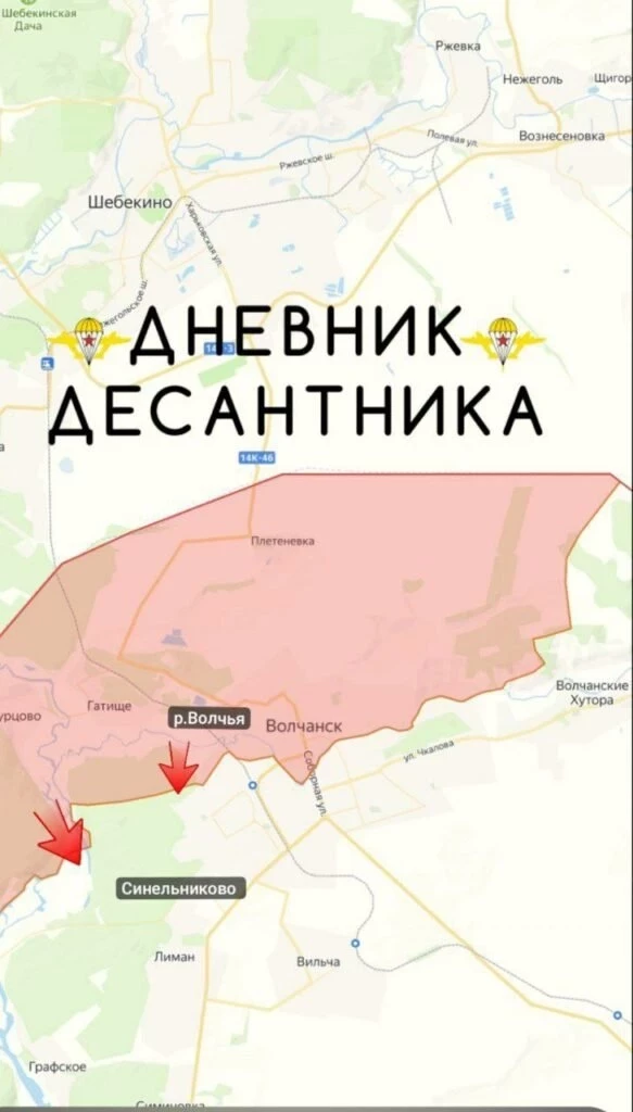 На Харьковском направлении войска РФ расширяют плацдарм на левом берегу реки Волчья и продвигаются в районе Синельниково. ВС РФ атакуют противника в районе Хатнего. На Купянском участке идут бои в районе Соболевки и Петропавловки.