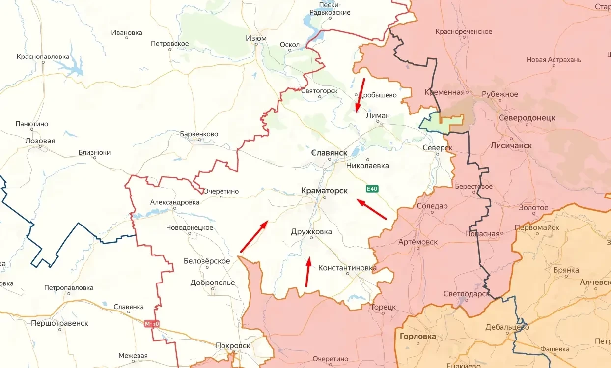 Продвижение к мощнейшему укрепрайону, который ВСУ возводили и усиливали с 2014 года идёт сразу по нескольким направлениям – южного, в сторону Константиновки, восточного – со стороны Артёмовска и Соледара, северного, в сторону Красного Лимана и юго-западного, со стороны Красноармейска (Покровска).