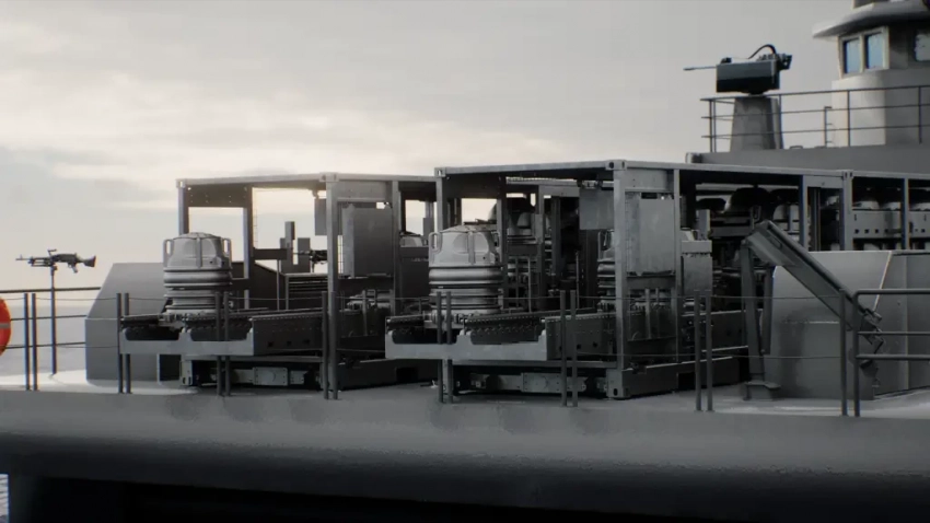 SH Defense и Kongsberg работают над морской ударной ракетой (NSM), которая находится в контейнере. Можно разместить четыре таких контейнера на задней палубе, то есть на одном корабле будет 16 NSM. На судне также есть три площадки для 30-миллиметровых автоматических пушек для периферийной защиты. Вопрос только в том, кто и как будет наводить эти пушки. Вроде бы на борту есть место для небольшого боевого информационного центра (БИЦ), но тогда возникает вопрос безопасности тех, кто будет работать в этом центре.