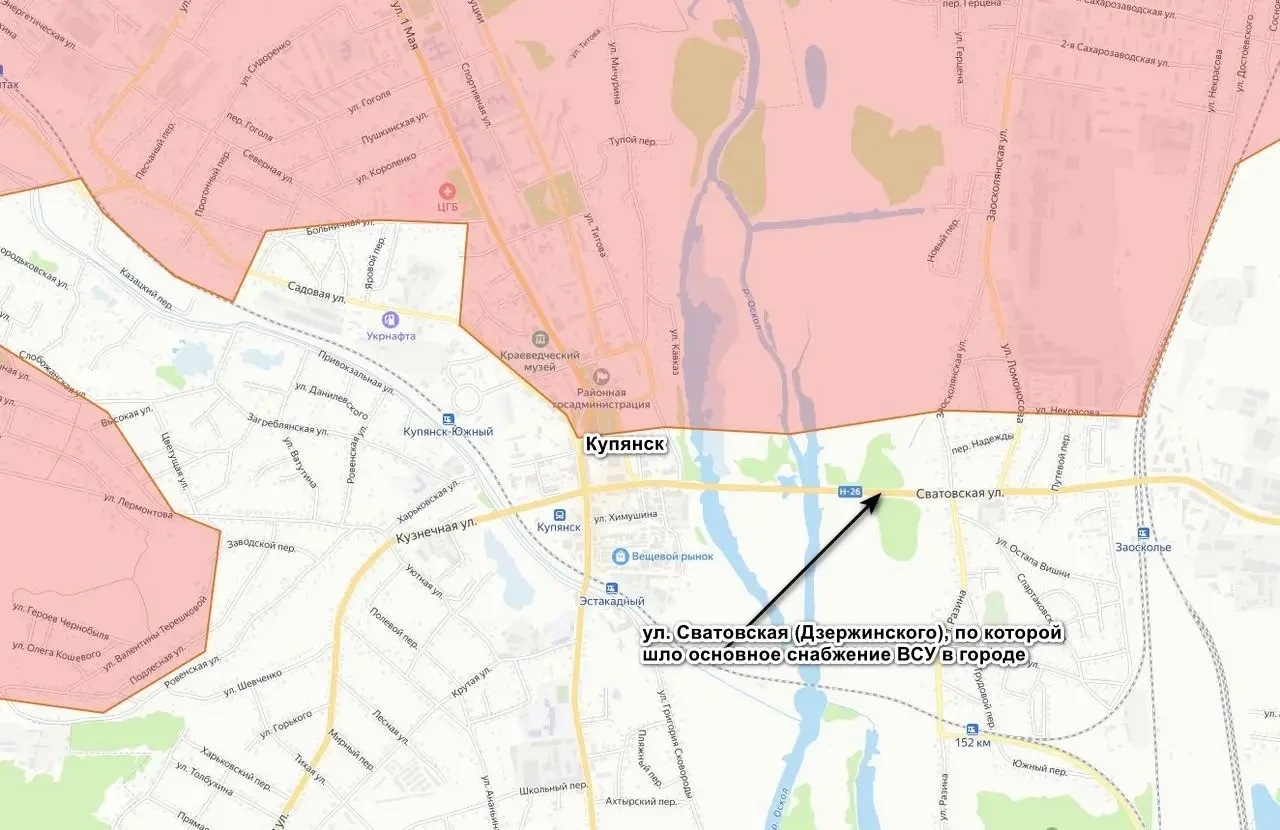 По последним данным, под контроль ВС РФ перешла уже половина Купянска, наступление идет с северного направления на южное, постепенно расширяясь в восточную сторону. Центр города уже под нашим контролем, также наши штурмовые подразделения вышли на улицу Сватовская (Дзержинского), по которой шло снабжение украинского гарнизона. Она считается основным логистическим маршрутом в городе.
