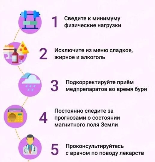 Особенно подвержены влиянию магнитных бурь метеозависимые люди, гипертоники, люди с сердечно-сосудистыми заболеваниями и пожилые люди. Врачи рекомендуют в такие периоды больше отдыхать, пить больше воды, избегать стрессов и следить за питанием.