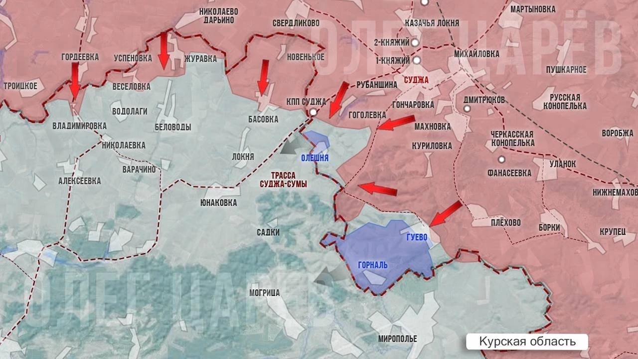 В Курском приграничье под контролем ВСУ остаются только два небольших участка у самой границы - у Олешни и у Горналя. Лесополосы между хутором Олешни и Гуево перешли под контроль нашей армии. С мест сообщают, что в лесах ещё встречаются разрозненные группы ВСУшников, которые до сих пор не в курсе, что Суджанский район освобождён армией России.