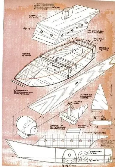 Некоторые самоделки носили явно экспериментальный характер и были явно рассчитаны на развитие технической жилки самодельщиков. Например, среди них был вот такой «шлёп-шлёп» – катерок без винта, передвигающийся за счёт горизонтальных ударов «хвоста», то есть по аналогии с китами. Позднее, рассказ об этом движителе в применении его к модели грузовой баржи появился в журнале «Юный техник»