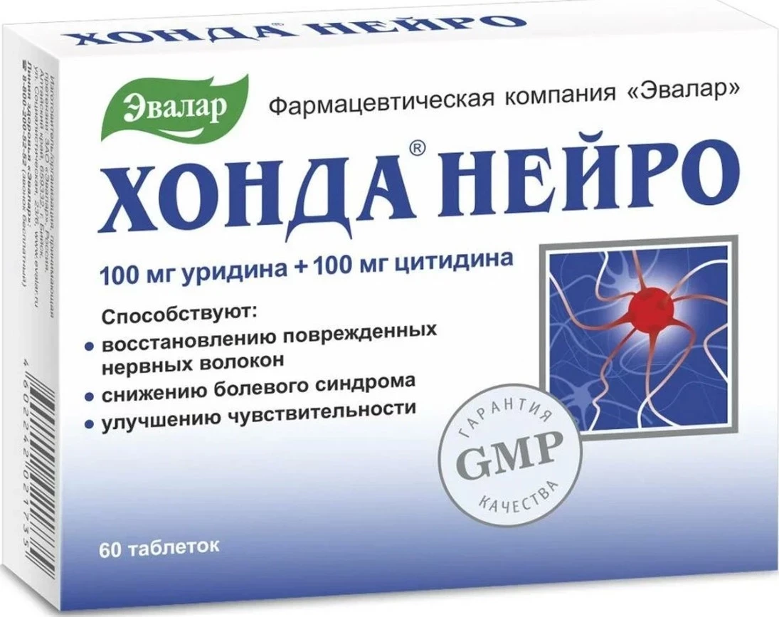 В топ БАДов, которые действительно работают с нервной системой, Хонда Нейро от Эвалар входит не просто как участник — как крепкий середняк с медицинским уклоном. Это не «витаминка для настроения», а мощный регенератор нервных волокон. Основу здесь составляют уридин и цитидин — два нуклеотида, которые способствуют восстановлению структуры повреждённых нервов и нормализации передачи импульсов. Что это значит на практике? Меньше болит. Лучше чувствуешь. Быстрее восстанавливаешься после травм, защемлений, хронических нейропатий. Добавка не ограничивается «нервами» — она помогает и при боли в суставах, где нарушена нервная проводимость. Дополнительно в составе есть витамин B6, который нормализует работу центральной нервной системы и участвует в синтезе нейромедиаторов (а это уже про сон, настроение и устойчивость к стрессу). 60 таблеток по 600 мг хватит на полноценный курс. Препарат не моментальный, эффект тянется — принимать стоит не меньше двух месяцев, с перерывами и повторными курсами. По качеству — всё строго: российский продукт, но по международному стандарту GMP, так что пыль не втюхивают.