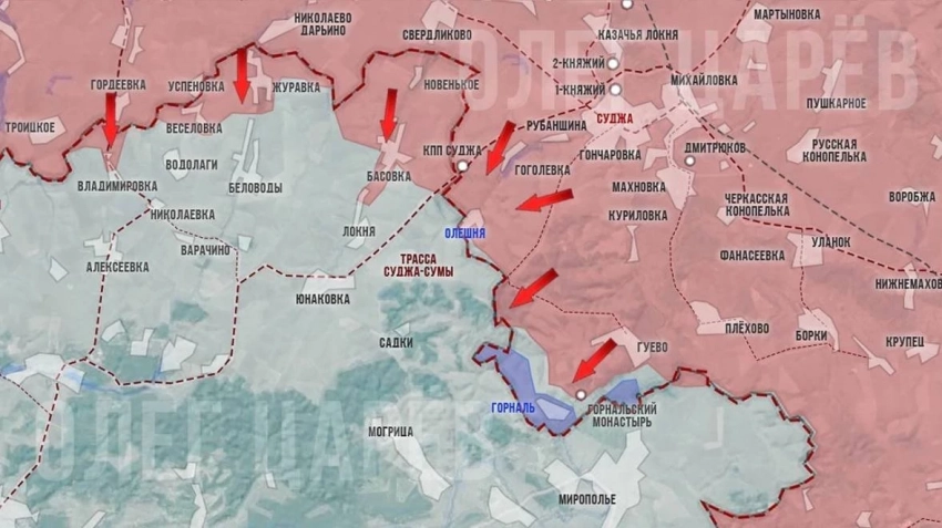 Присутствие противника на территории Курской области сохраняется на лесных участках юго-западнее Олешни и вокруг села Горналь, в том числе на части территории Горнальского мужского монастыря, отмечает Олег Царёв в своём Telegram-канале.