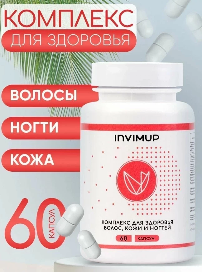 INVIMUP — это витаминно-минеральный комплекс, который является настоящей находкой для всех, кто заботится о своем внешнем виде. Его уникальный состав на основе MSM, L-цистеина, витамина B5, цинка и экстрактов растений помогает улучшить состояние кожи, восстановить поврежденные волосы и укрепить ногти. Биодобавка способствует синтезу коллагена и кератина, повышая упругость и эластичность кожи, а также предотвращая выпадение волос. INVIMUP — идеальный выбор для поддержания красоты и здоровья.
