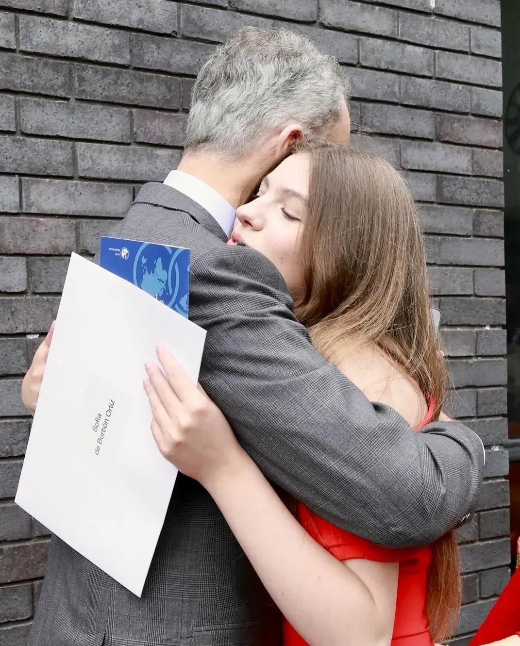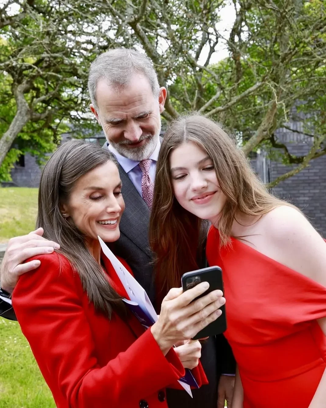На церемонию вручения дипломов девушка пришла в ярко-красном комбинезоне. Летиция, которая тоже посетила мероприятие вместе с мужем, выбрала брючный костюм того же цвета. Фотографии с события позже были опубликованы в официальных сетях королевской семьи.