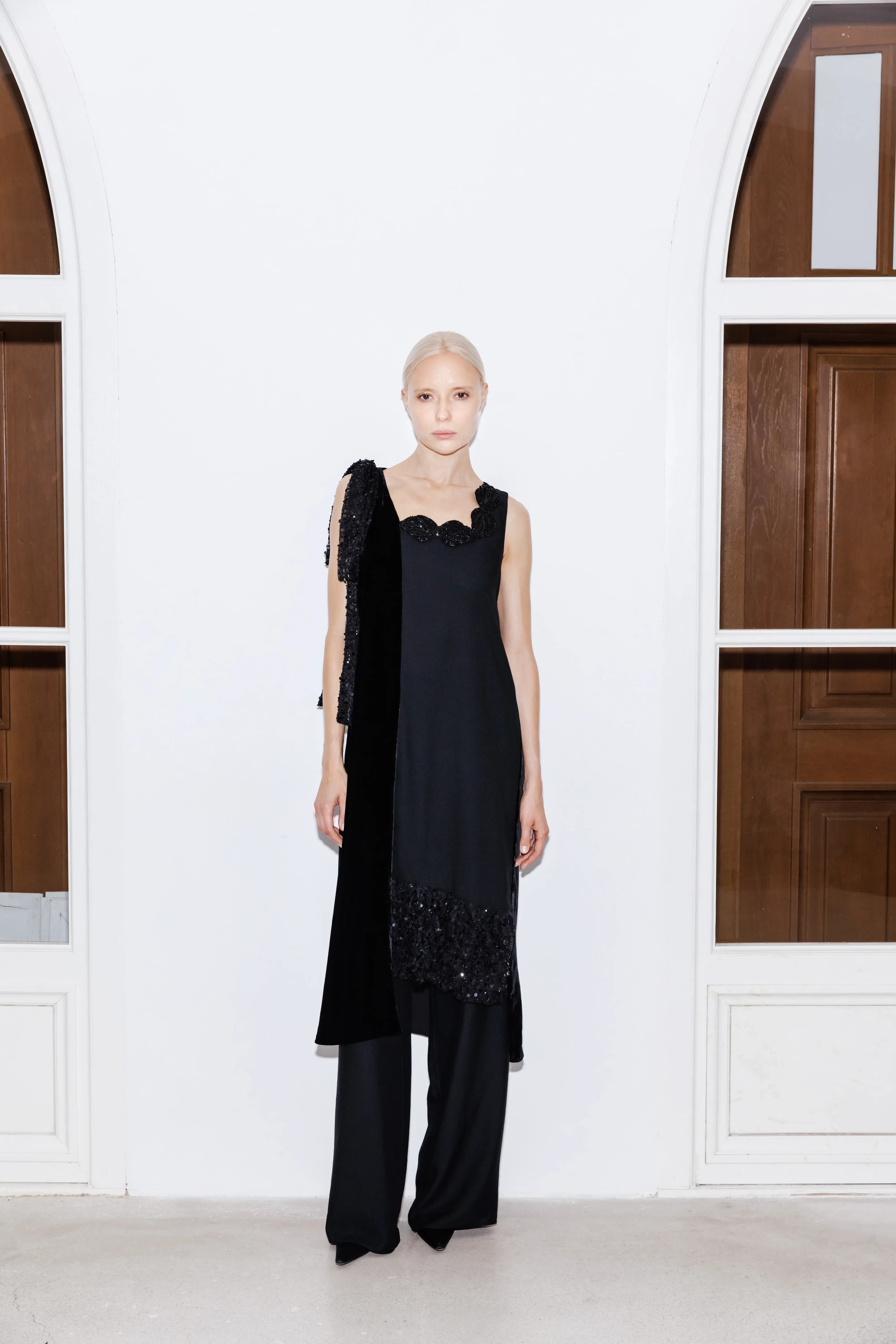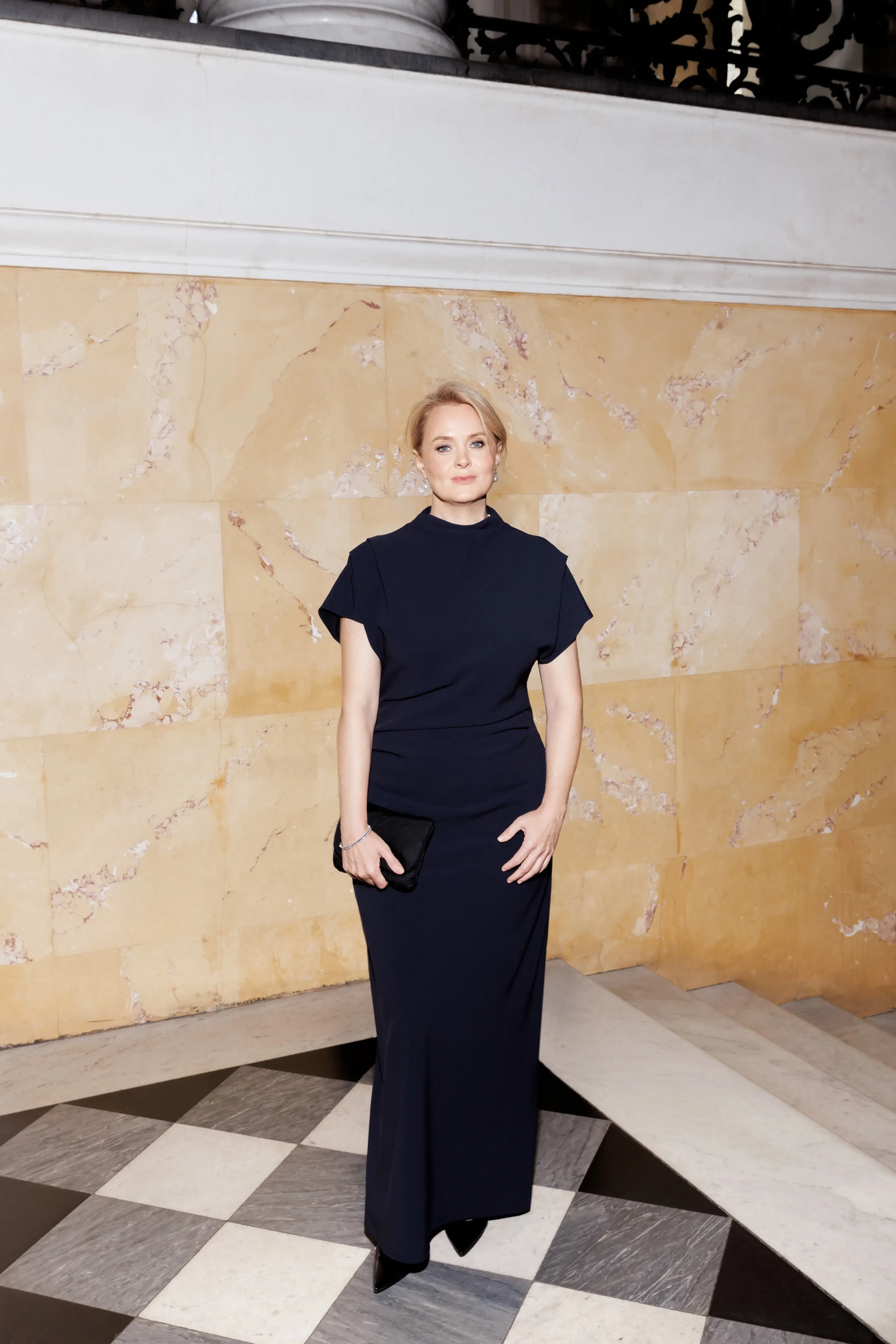 51-летняя Анна Михалкова, которая в последнее время часто появляется в свете (и часто — вместе с подросшей дочерью), выбрала для вечера классическое чёрное платье в пол и ювелирные украшения бренда Mercury — серьги и браслет из белого золота с бриллиантами и жемчугом.