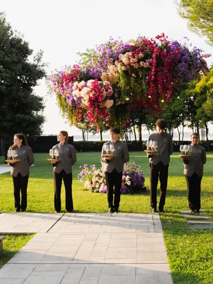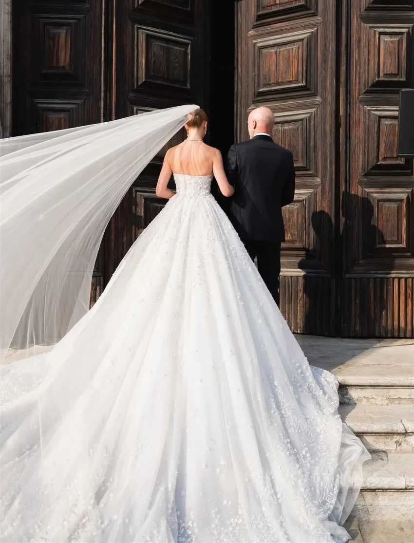 Свадьба Дины, консультанта по топ-камням, и её возлюбленного Дана, успешного бизнесмена из Швейцарии, как и у Безосов, продлилась три дня. И организацию торжества доверили тому же агентству, которое занималось грандиозной свадьбой Джеффа и Лорен. Для молодожёнов и гостей даже был забронирован тот же отель, где останавливались Безосы, Aman Venice, принадлежащий российскому миллиардеру Владиславу Доронину. Его забронировали за два года до свадьбы.