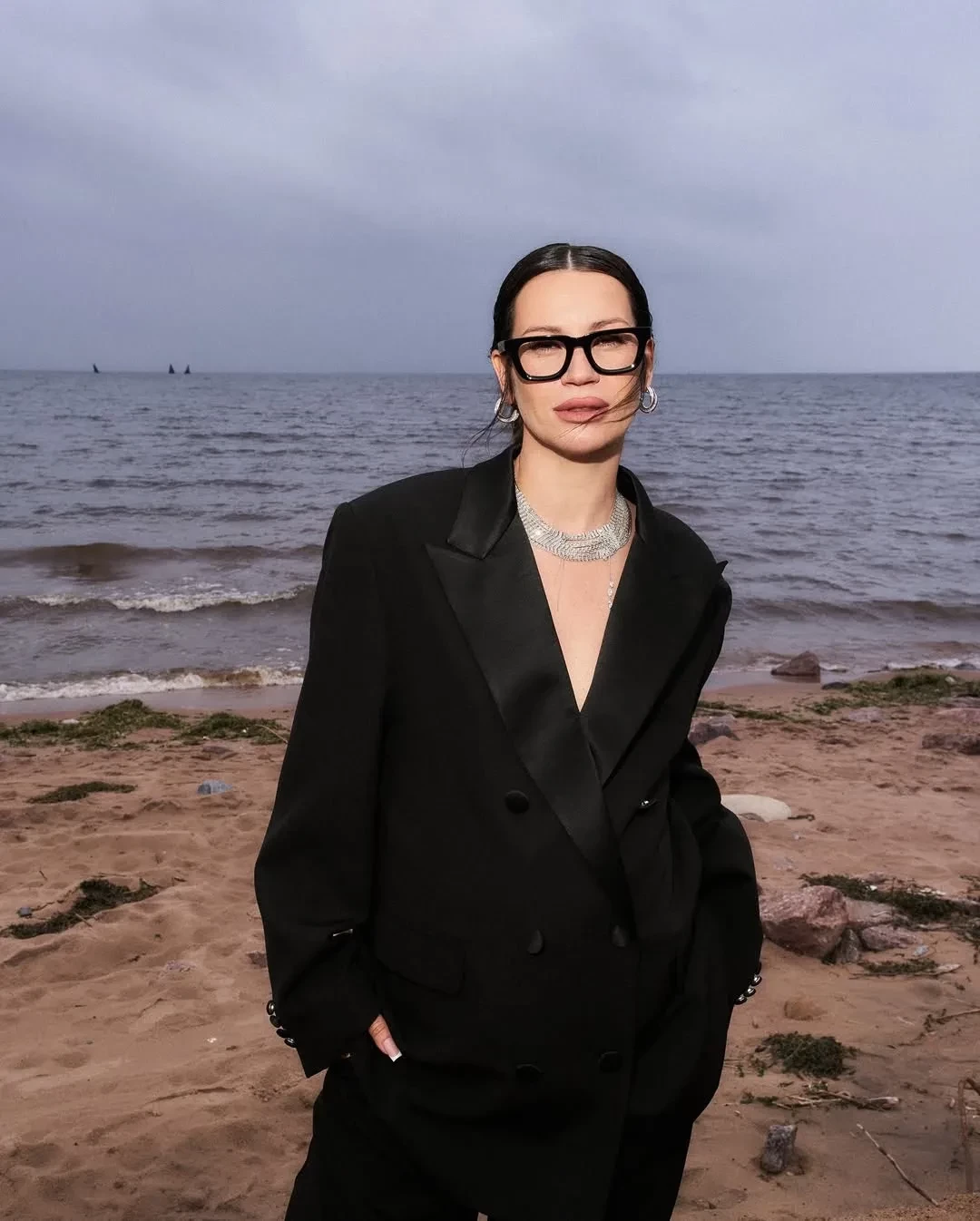Ксения Собчак и Ида ГаличЗа два дня фестиваля 35-летняя Ида примерила несколько луков от российских дизайнеров. Она носила чёрный брючный костюм Lesyanebo, боди с полупрозрачной юбкой Autentiments, металлический жакет Viva Vox и белый костюм "1811", дополнив образ украшениями Schiaparelli. На этот раз над образами Галич работал не её постоянный стилист Олег Горчанин, а Эльмира Тулебаева.