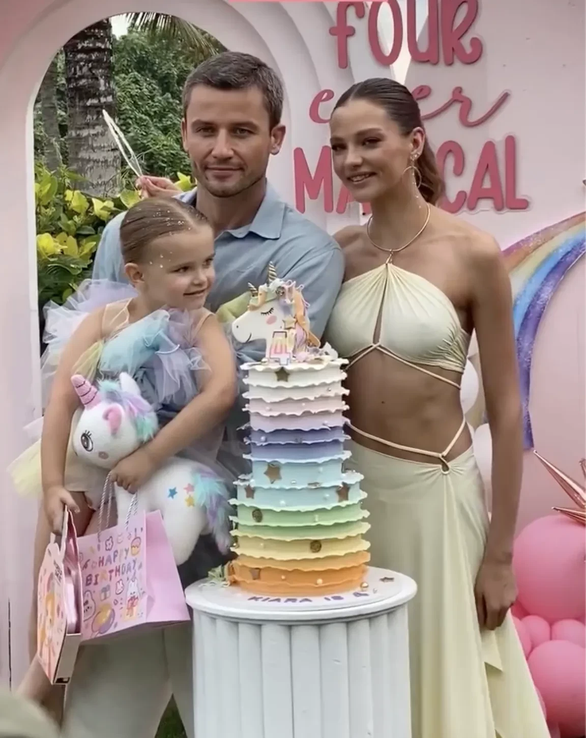 В сети появились новые фотографии с празднования дня рождения дочери Алеси Кафельниковой Киары, которой на днях исполнилось четыре года. 26-летняя Кафельникова поделилась снимками с детской вечеринки, показав не только фото с дочерью, но и с мужем, 39-летним бизнесменом Георгием Петришиным, который нечастый гость в соцсетях модели.