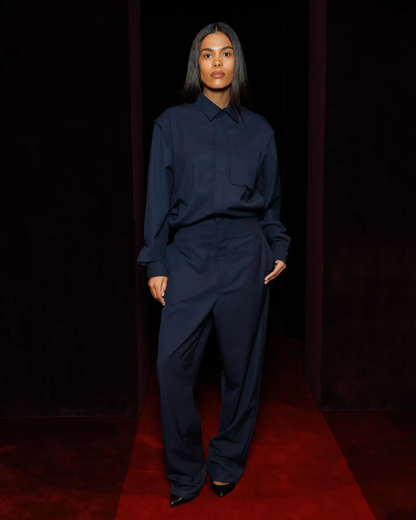 Эд Вествик/Фото: ferraristyle/instagram*Омар Аюсо/Фото: ferraristyle/instagram*Тина Кунаки/Фото: ferraristyle/instagram*Аличе Пагани/Фото: ferraristyle/instagram*Матео Чеккарини и Ева Риккобоно/Фото: ferraristyle/instagram*Элли Туманн/Фото: ferraristyle/instagram*Жан-Карло Леон/Фото: ferraristyle/instagram*Карен Бланчард/Фото: ferraristyle/instagram*Под руководством креативного директора Рокко Янноне бренд представил коллекцию, вдохновлённую динамикой легендарных автомобилей Ferrari. Коллекция открылась с переосмысления делового стиля: серые плиссированные костюмы сочетались с массивными меховыми и верблюжьими пальто и дополнялись галстуками Rosso Corsa. Среди ключевых элементов коллекции — меховые пальто, золотые ткани с бахромой и кожаные аксессуары. Фирменной деталью, возвращающейся из сезона в сезон, стали перчатки — неизменный атрибут поклонников Ferrari.