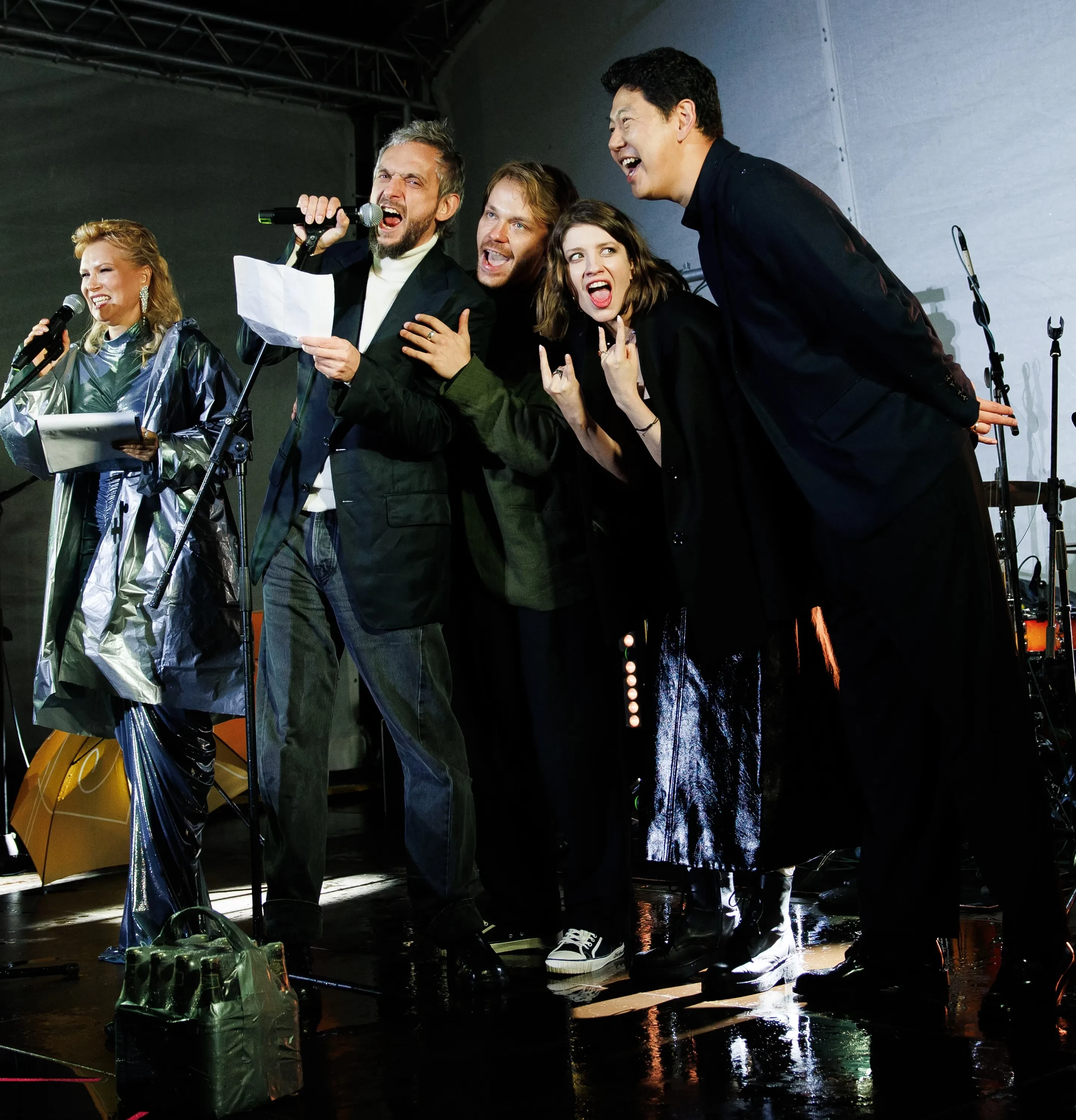 Олеся Судзиловская, Аня Чиповская, Екатерина Шпица и Гоша Куценко на закрытии фестиваля "Короче"