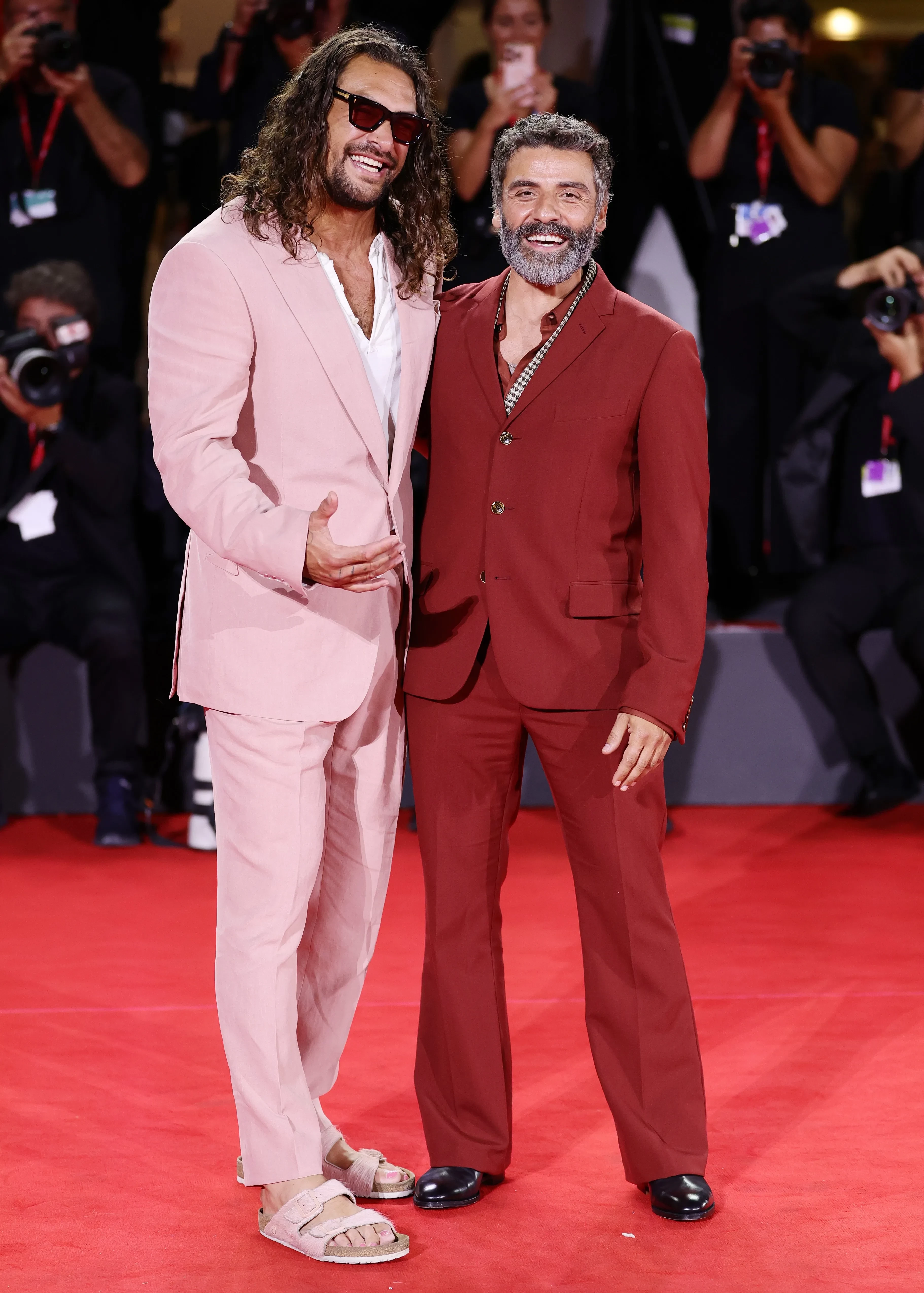 Руни Мара и Хоакин ФениксХоакин Феникс, Джеймс Уилсон и Руни МараРуни Мара и Хоакин ФениксМотаз Малхис и Одесса Рэй46-летний Джейсон Момоа вышел на дорожку в розовом костюме и шлёпанцах Birkenstock в тон, а ровесник актёра Оскар Айзек выбрал образ в красных оттенках. 54-летний режиссёр София Коппола позировала рядом с 62-летним дизайнером и своим другом Марком Джейкобсом в платье с кружевом из новой коллекции Marc Jacobs. Они представили документальную ленту о карьере и жизни модельера — "Марк Софии".