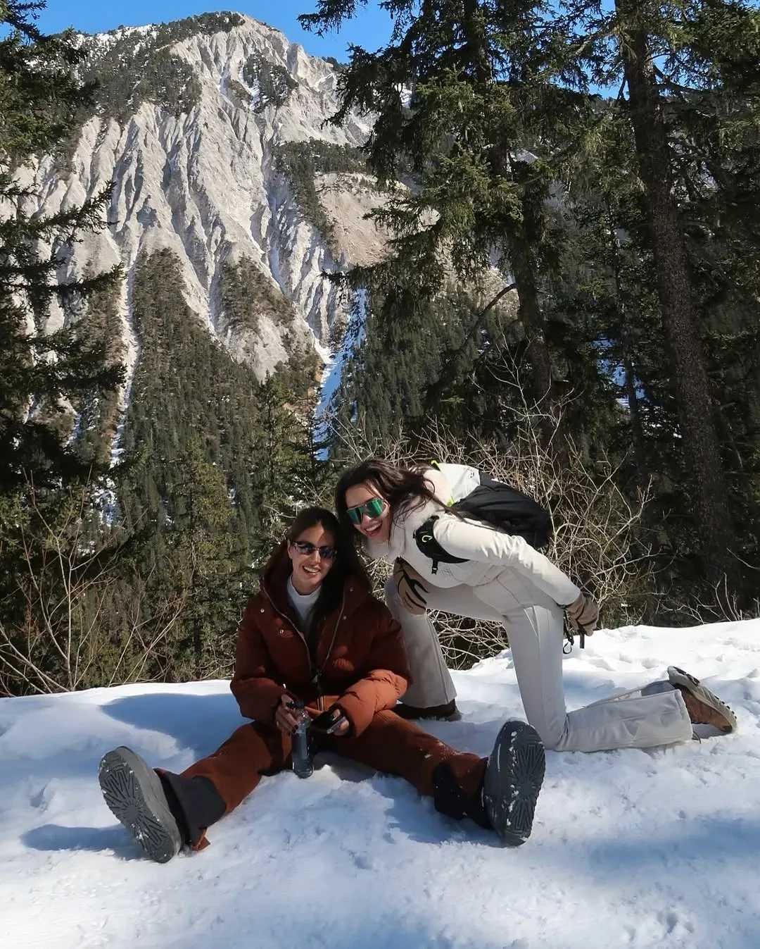 Сёстры Манасир прогулялись до озера La Rosiere и сделали несколько фото на память на фоне местного пейзажа. На кадрах 25-летняя Диана и 21-летняя Дана позируют в горнолыжных костюмах и солнцезащитных очках (у Даны от Chanel). "Впечатления от этого места каждый раз, как в первый!", — написала Диана. Её младшая сестра добавила: "Счастлива".