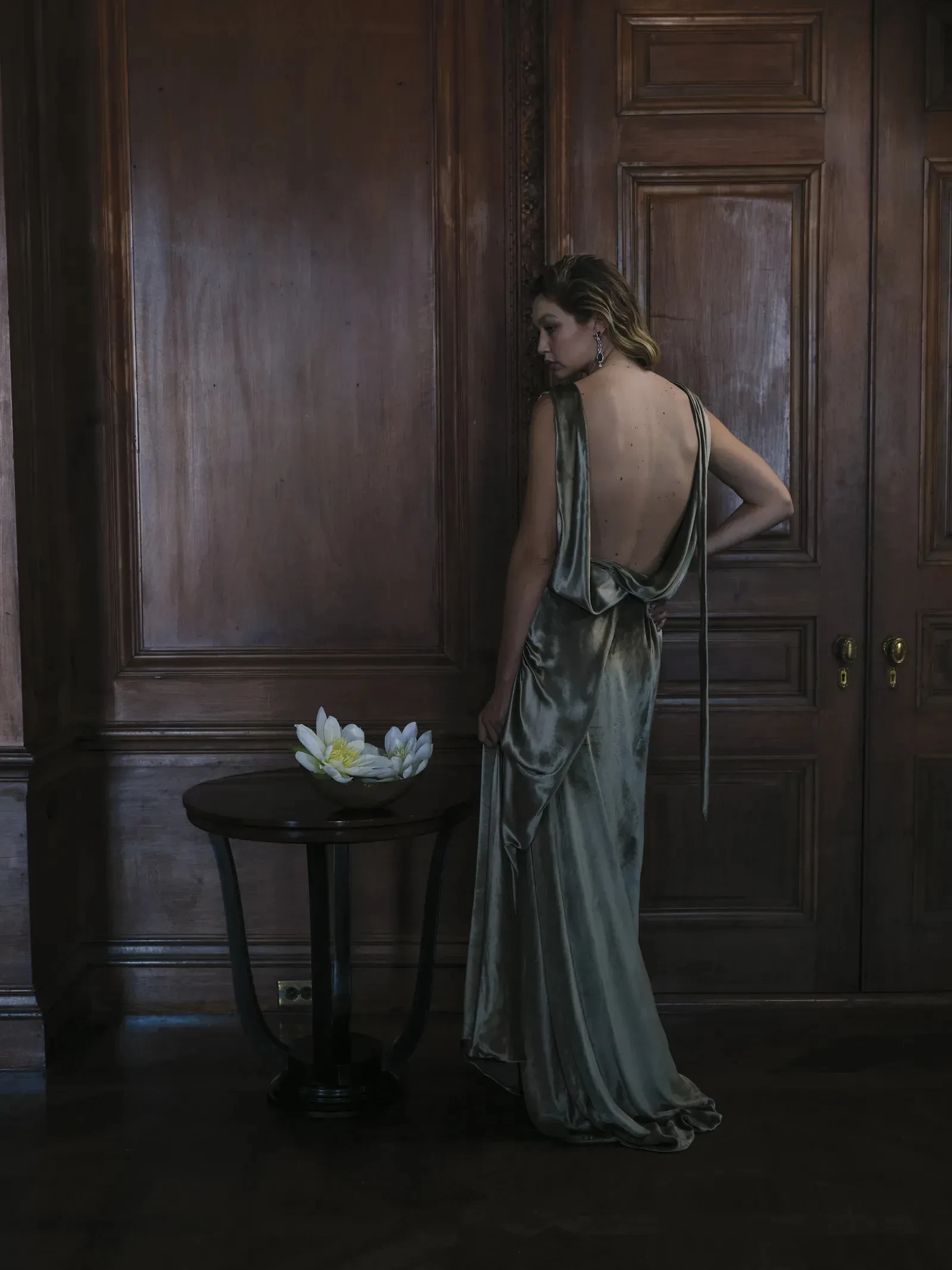 Джиджи позировала в объективе фотографа Энни Лейбовиц. На обложке 29-летняя модель появилась в прозрачном платье с цветочным принтом бренда Valentino. Также Хадид предстала в нескольких образах: в куртке и юбке Chanel, в платье в пол Dior, в платье из перьев Prada и в кремовом платье с открытой спиной бренда Miu Miu.