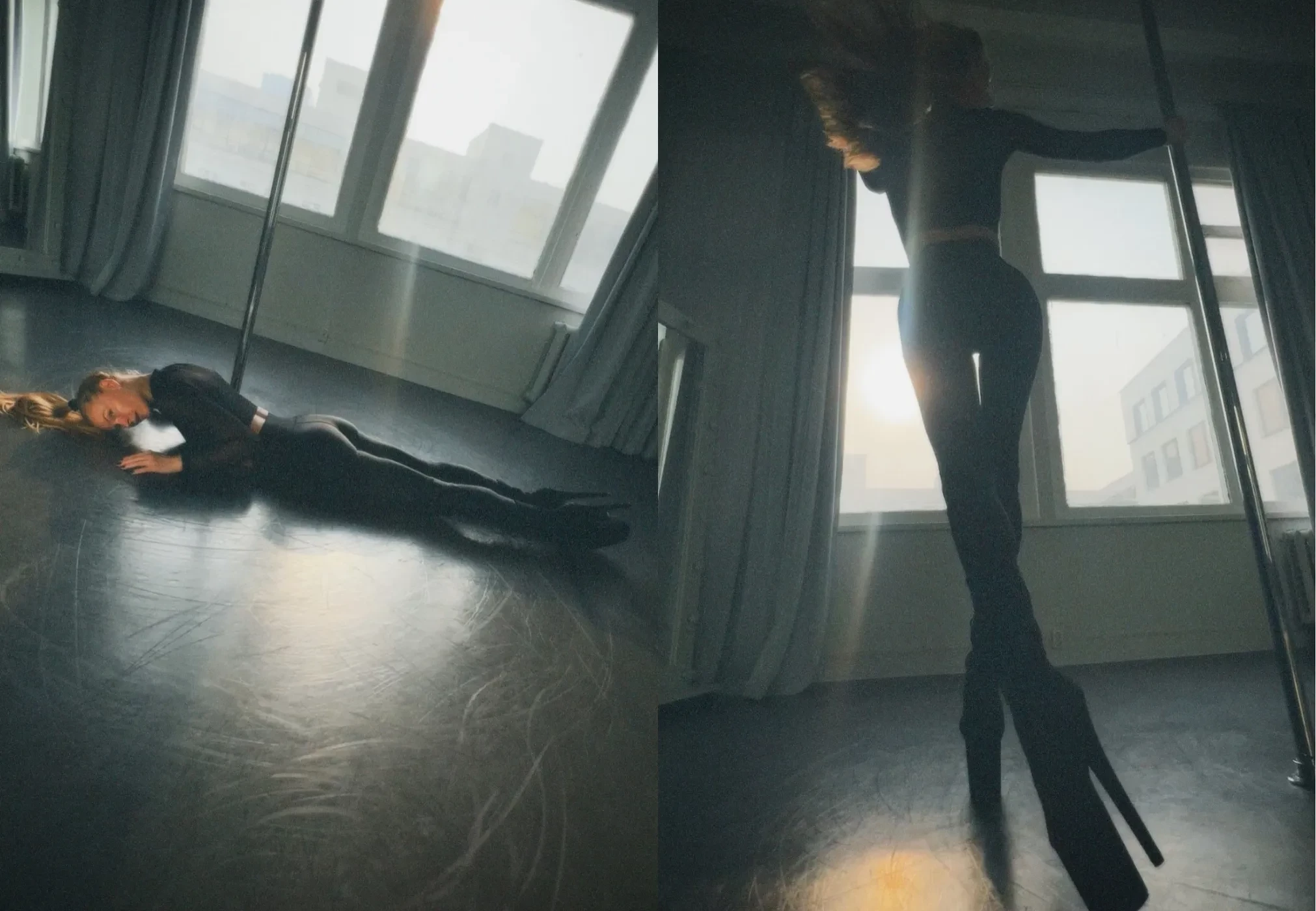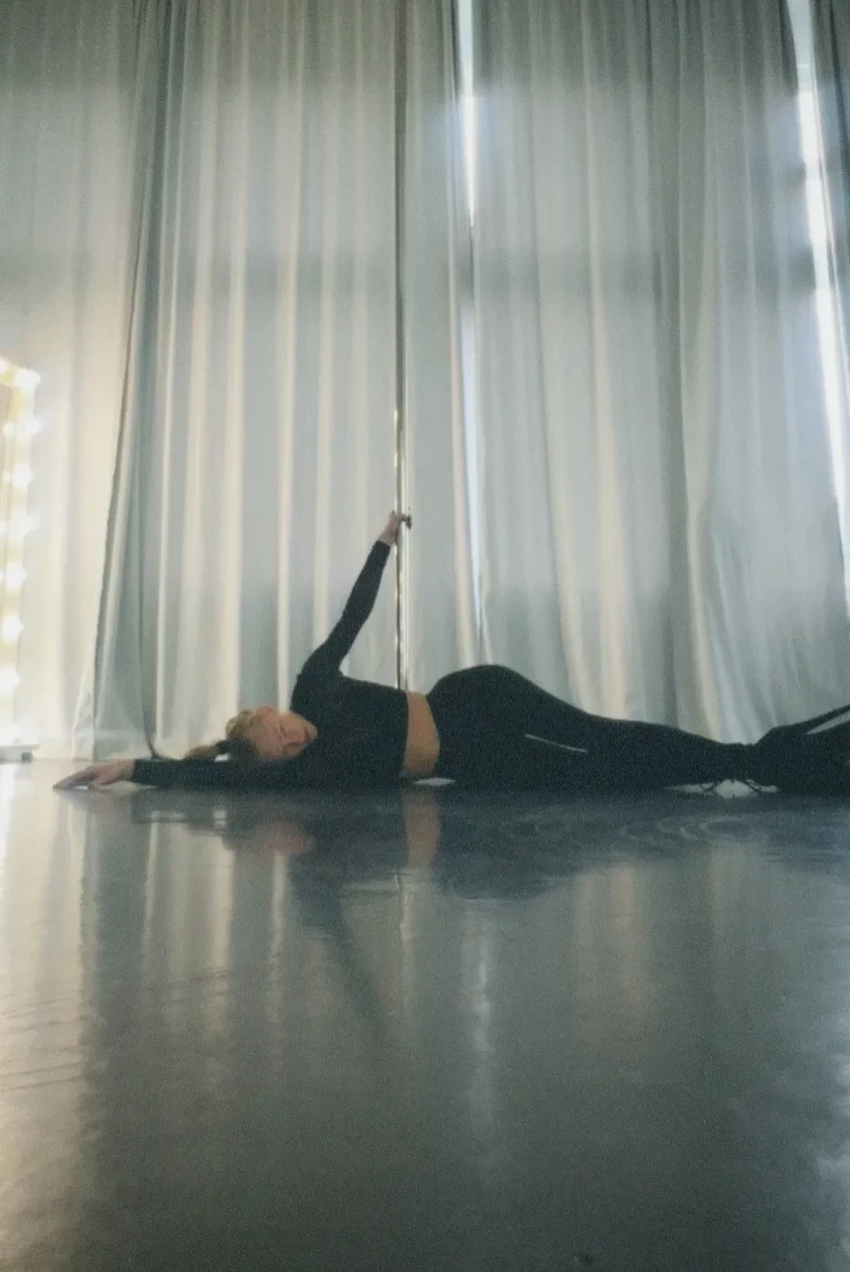 Светлана Ходченкова опубликовала в инстаграме* новые фотографии, которые сделала во время своих тренировок на пилоне. На снимках 42-летняя актриса позирует у шеста в откровенных позах, одетая в чёрный кроп-топ с длинными рукавами, лосины в тон и стрип-туфли на высоком каблуке и платформе.