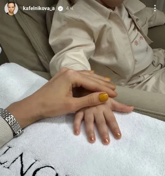 В видео Киара сидит в маникюрном кресле с лаком Hermes в руках. Судя по кадрам, дочери Кафельниковой тоже нанесли покрытие, однако ей, в отличие от мамы, которая ограничилась чистым цветом, добавили глиттер.