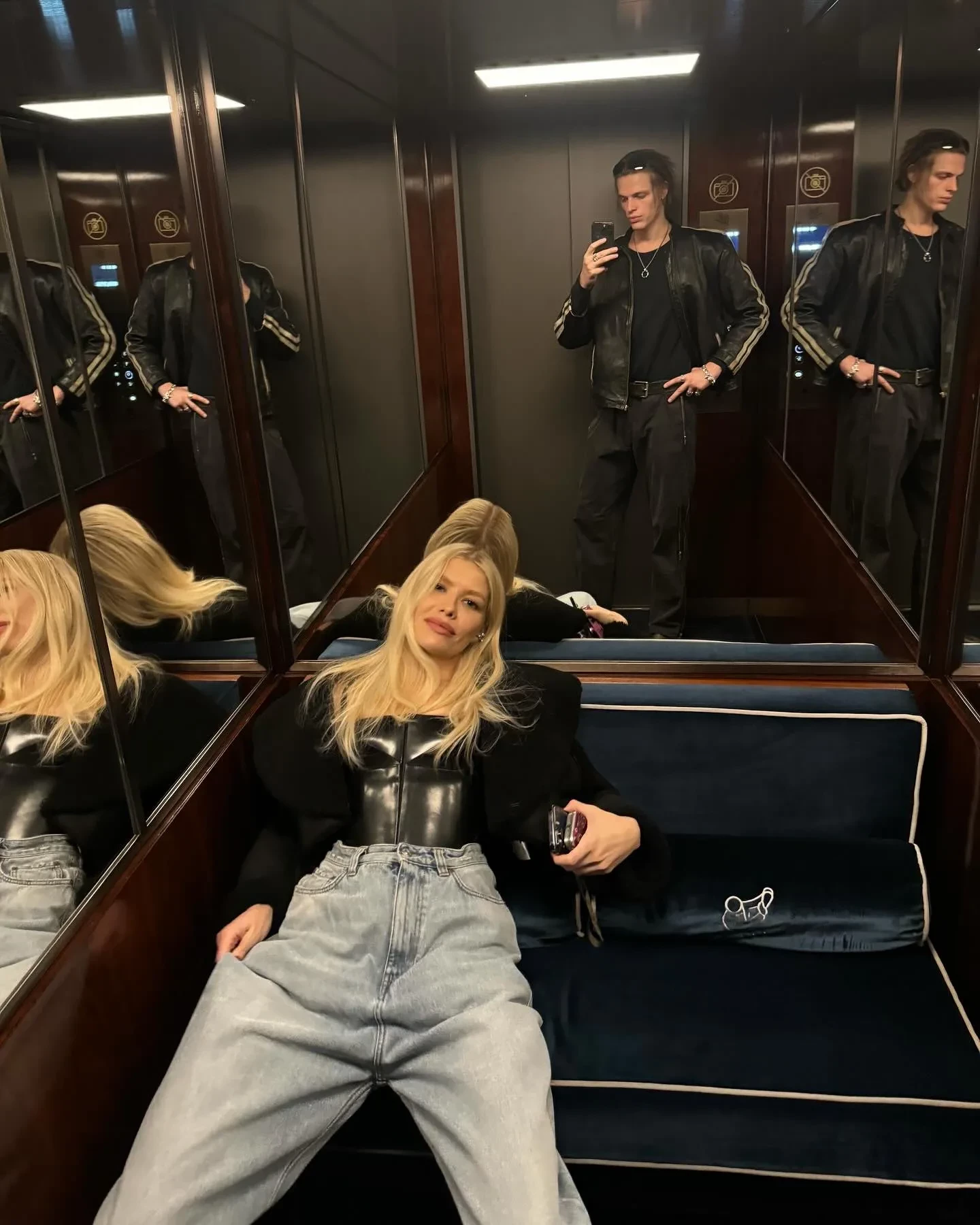 На снимках 38-летняя Перминова позирует в полупрозрачных платьях Francesco Murano и Walk of Shame, в корсете Ulyana Sergeenko, а также в автомобиле без макияжа. Кроме того, она добавила кадр из лифта с Тарасом, совместное фото с братом Демны Гвасалии Гурамом и топ-моделью Элтоном Мейсоном.