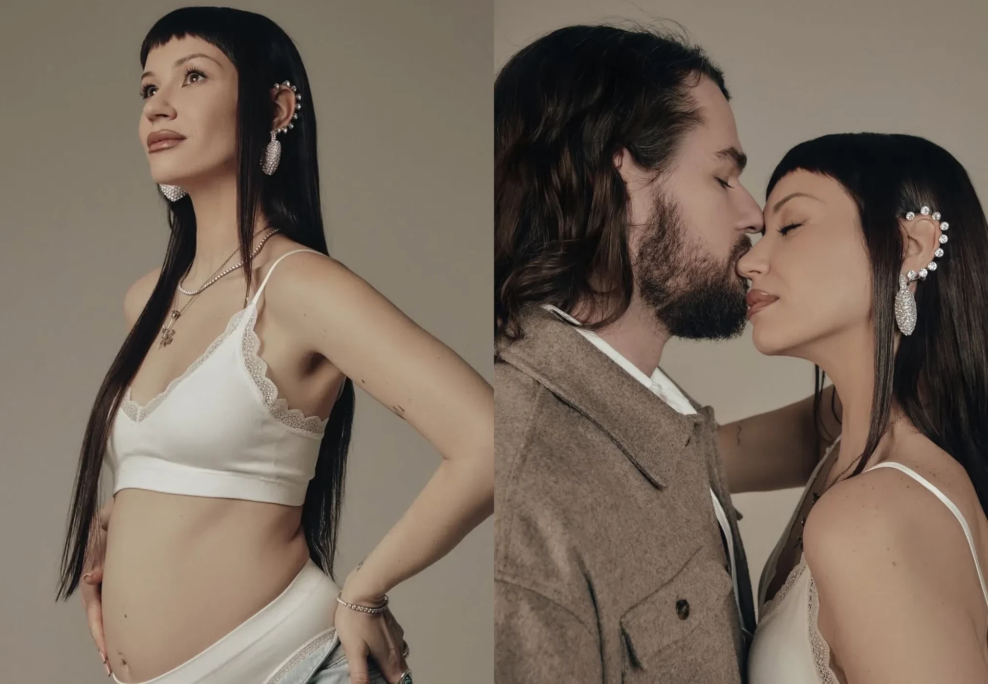 "Прекрасное время. Почти шесть месяцев у меня под сердцем маленький человек. Невероятно", — подписала Ида кадры, на которых она в белом белье и джинсах демонстрирует округлившийся живот и обнимает возлюбленного. Олег для семейной фотосессии нарядился в белую и коричневую рубашки.