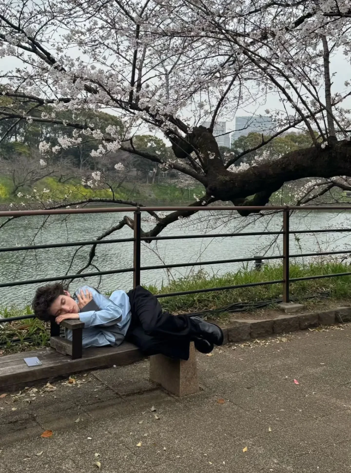 В Токио Эйдельштейн прилетел не один, а вместе с младшим братом Матвеем — с ним же он тусовался в Париже на показе Baalenciaga. Марк пришёл на мероприятие в голубой рубашке и серых брюках, а его брат — в образе total black. Позже актёр опубликовал в инстаграме* фото, на котором лежит на скамейке под цветочным деревом. Среди звёздных гостей выставки, помимо Марка, также были звезда "Белого лотоса" Кэрри Кун и другие знаменитости.