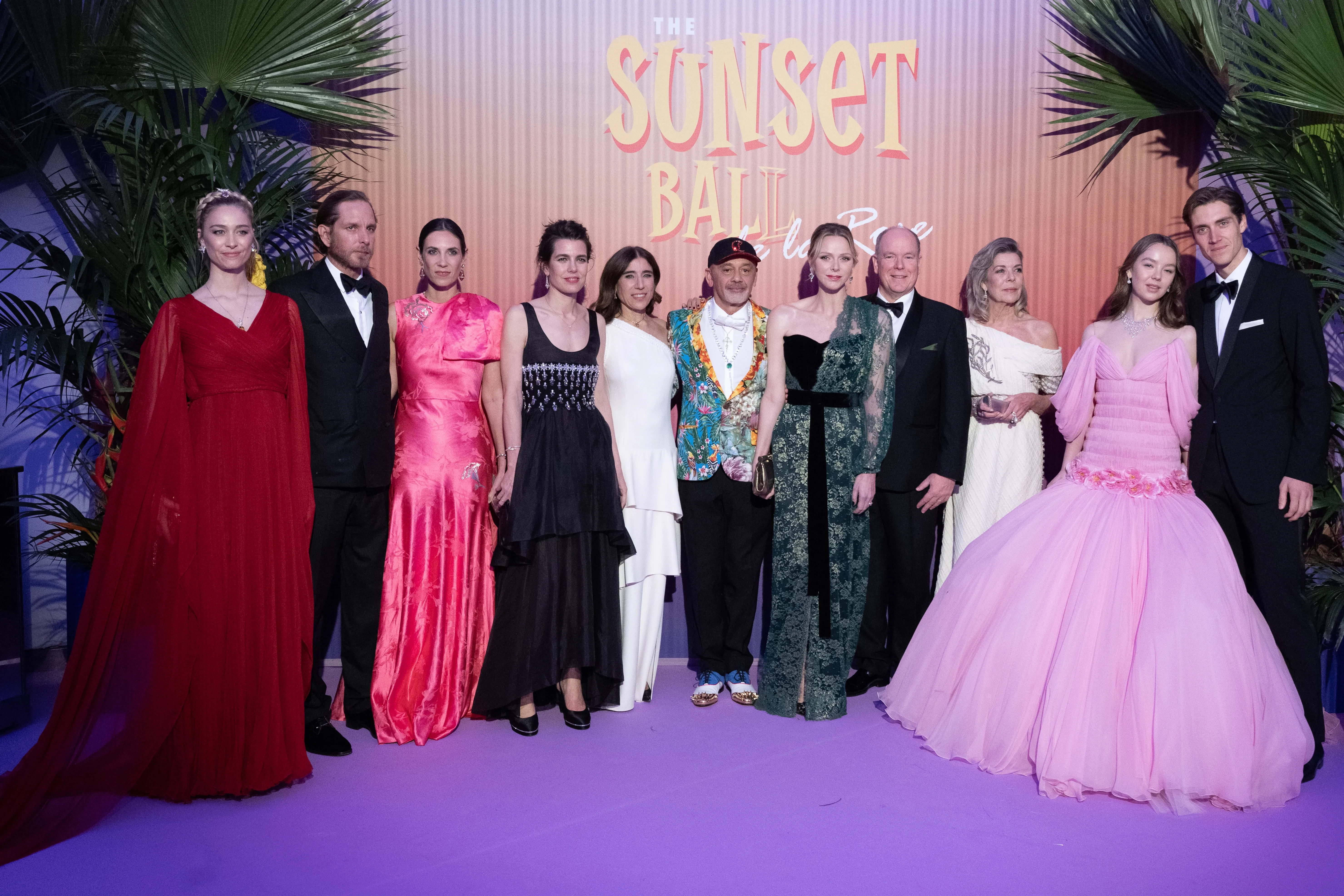 В одном из пространств комплекса Monte-Carlo Sporting, украшенном в тематике “тропики” пальмами и экзотическими цветами, собрались княгиня Шарлен (в Dolce&Gabbana) и князь Альбер II, принцесса Каролина и Шарлотта Казираги (обе в Chanel), Александра Ганноверская (в Giambattista Valli), певица Ширли Бэсси и другие.