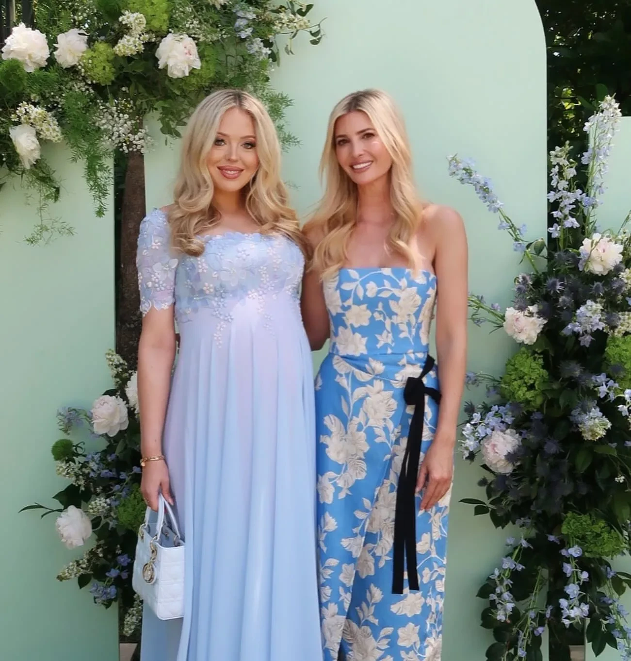 Для вечеринки беременная Тиффани выбрала нежно-голубое платье в пол, её старшая сестра Иванка также была в платье голубого цвета, но более насыщенного оттенка. Сам праздник прошёл в стиле историй детской писательницы и художницы Беатрикс Поттер, главным героем которых был кролик — это нашло отражение и в сет-дизайне и декоре на вечеринке.