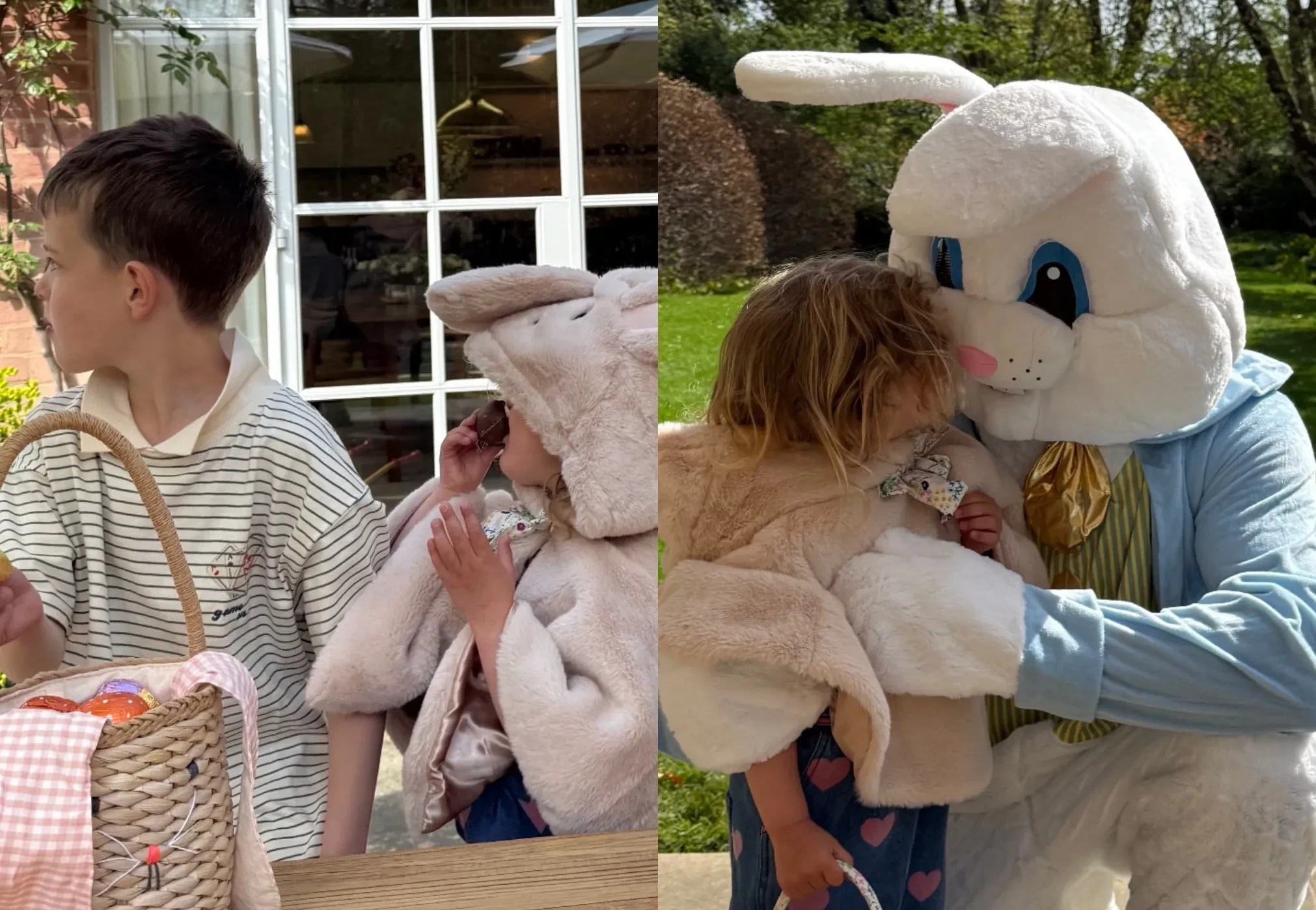 На фотографиях можно увидеть, как дети, трёхлетняя Изабелла и семилетний Джек, празднуют Пасху. На одном из снимков они общаются с аниматором в костюме кролика, а на другом уже сам аниматор обнимает Изабеллу. Также модель добавила фотографию, где дети едят сладости, которые им подарили.